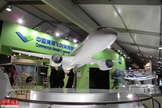 中國商用飛機有限責(zé)任公司攜C919大型客機模型、ARJ21-700新支線飛機模型參加范堡羅國際航空展。來源:參考消息