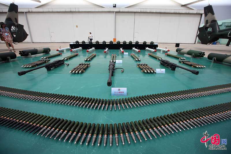 靜態(tài)展示區(qū)展示直9-WZ武裝直升機的武器裝備和彈藥。 攝影:中國網(wǎng) 楊佳