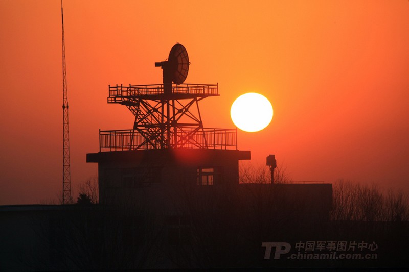 朝陽劃過氣象雷達(dá)的一角,寧靜的外場變的越來越喧囂。苑小偉 攝