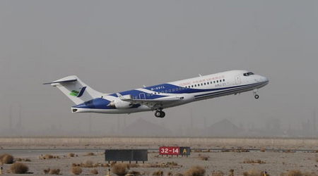 中國(guó)經(jīng)濟(jì)網(wǎng)訊 2013年3月31日,ARJ21-700飛機(jī)102架機(jī)進(jìn)行了轉(zhuǎn)場(chǎng)后的首次檢飛。102架機(jī)于上午9時(shí)21分在嘉峪關(guān)機(jī)場(chǎng)起飛,經(jīng)過(guò)1小時(shí)46分鐘的飛行,于11時(shí)07分降落,順利完成了檢飛任務(wù)。局方試飛員對(duì)飛機(jī)性能和狀態(tài)給予了肯定。