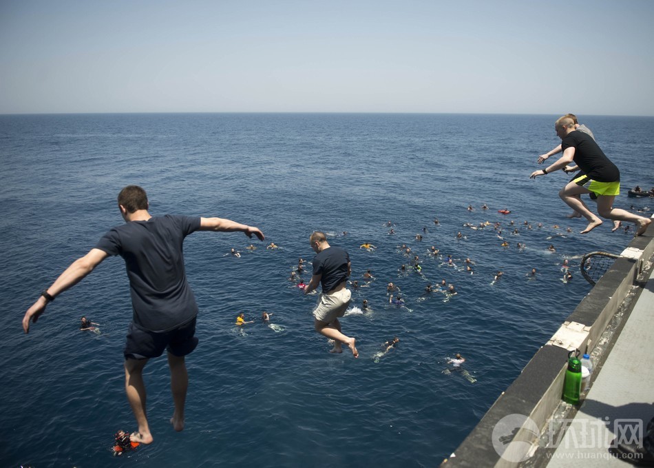 據(jù)美國(guó)海軍網(wǎng)報(bào)道,當(dāng)?shù)貢r(shí)間5月12日,正在阿拉伯海北部執(zhí)行部署任務(wù)的美國(guó)海軍尼米茲級(jí)航空母艦艾森豪威爾號(hào)(CVN 69)組織艦員進(jìn)行跳水游泳訓(xùn)練。這不僅僅是一項(xiàng)休閑娛樂活動(dòng),也是訓(xùn)練艦員在緊急情況下的跳水逃生能力。
