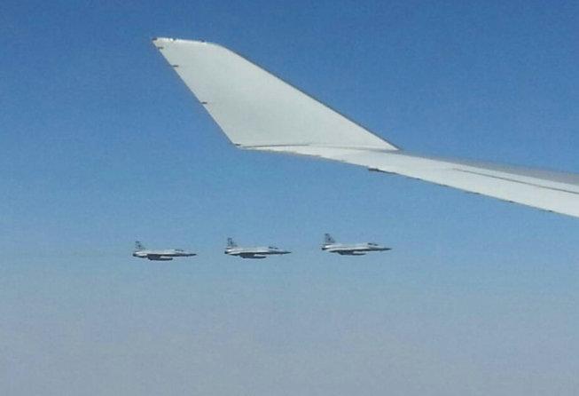 訪問巴基斯坦的中國總理李克強(qiáng)乘坐的專機(jī)22日進(jìn)入巴領(lǐng)空后,巴空軍派出6架“梟龍”戰(zhàn)機(jī)進(jìn)行了編隊護(hù)航。在很多情況下,為到訪專機(jī)護(hù)航有著很現(xiàn)實的安全需求。不過,對大多數(shù)國家而言,在和平時期派出戰(zhàn)斗機(jī)為外國首腦專機(jī)護(hù)航,則更多是一種禮遇,而護(hù)航戰(zhàn)機(jī)的數(shù)量體現(xiàn)著兩國關(guān)系的親密程度。