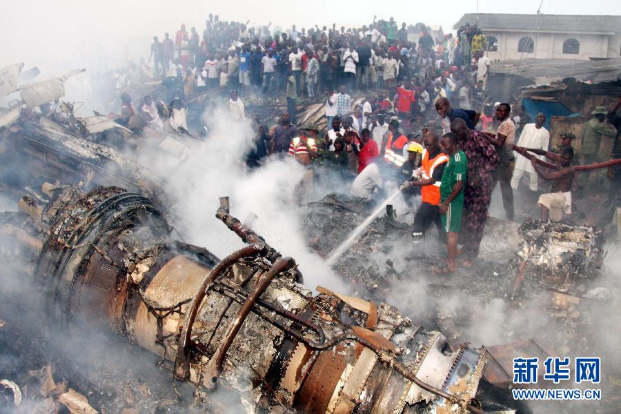 當(dāng)日,尼日利亞一架客機(jī)在拉各斯機(jī)場(chǎng)附近墜毀,機(jī)上153人全部遇難,空難還造成地面至少40人死亡。新華社發(fā)(通吉·奧巴薩攝)