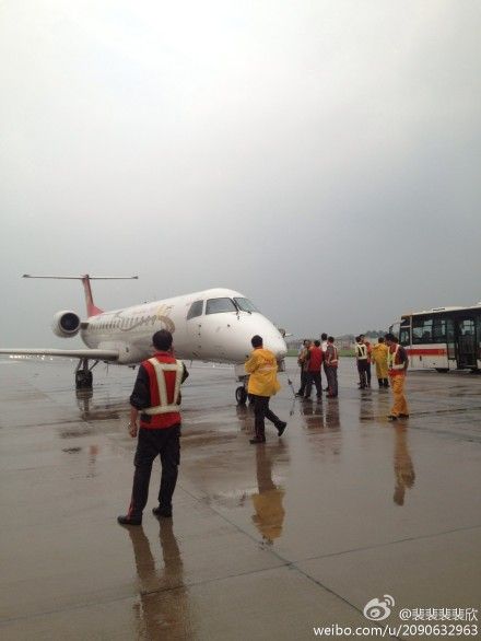 咸陽機(jī)場因突降大雨一客機(jī)爆胎滑出跑道