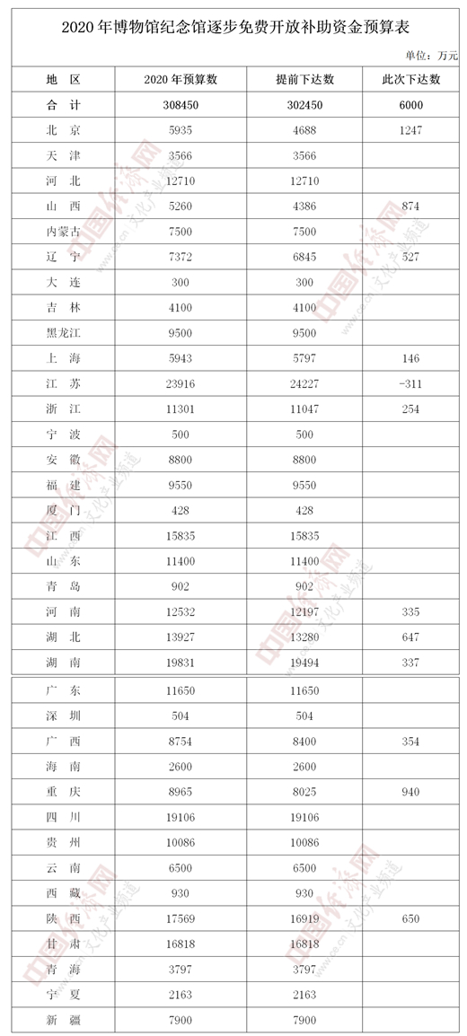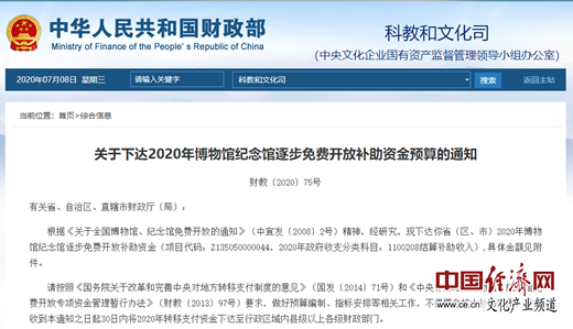 經濟日報-中國經濟網(wǎng)北京7月8日訊 7日,國家財政部官網(wǎng)發(fā)布《關于下達2020年博物館紀念館逐步免費開放補助資金預算的通知》(以下簡稱《通知》),《2020年博物館紀念館逐步免費開放補助資金預算表》同日公布。