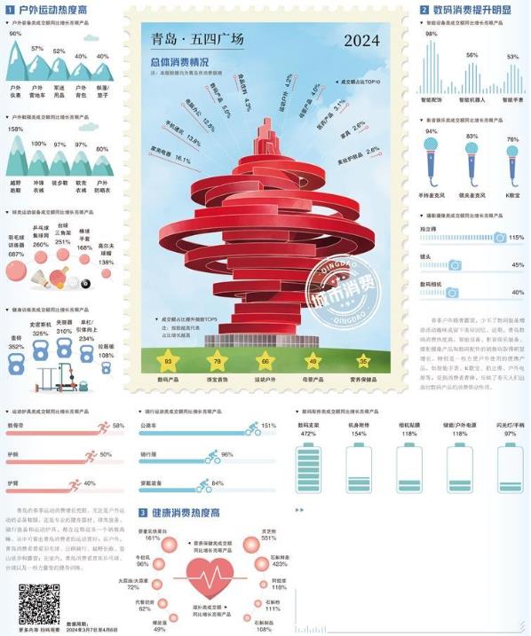 近年來(lái),青島打造了多個(gè)旅游IP,每到節(jié)假日,棧橋、太平角、八大關(guān)、五四廣場(chǎng)等景點(diǎn),都會(huì)人頭攢動(dòng)。影音娛樂(lè)、攝影攝像類產(chǎn)品的增長(zhǎng),顯現(xiàn)出青島著名旅游城市的底色。人氣足,消費(fèi)旺,文旅深度融合進(jìn)一步激發(fā)了消費(fèi)活力。