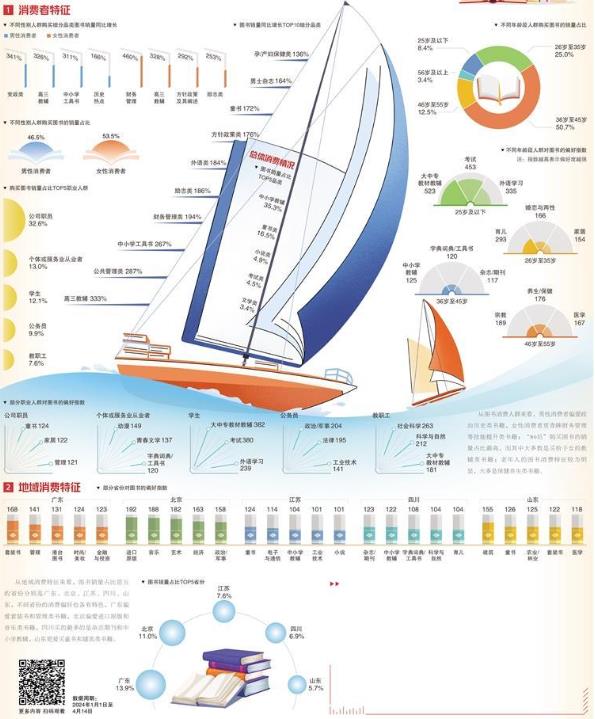 圖書是人們求知的階梯,也是不少人遇到現(xiàn)實(shí)問題時(shí),尋找解決途徑的重要選擇。無論是學(xué)生、職場(chǎng)人、管理者,還是年輕父母、中老年人,不同的閱讀偏好也體現(xiàn)出生活重心和關(guān)注點(diǎn)的區(qū)別。從圖書消費(fèi)人群來看,“80后”人群購(gòu)買圖書的銷量占比最高,超過了50%。從圖書銷量及增長(zhǎng)的占比情況來看,教輔類圖書最受歡迎,增長(zhǎng)勢(shì)頭十分強(qiáng)勁。