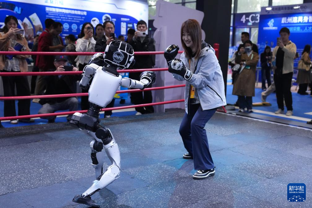 11月6日,觀眾在2025年世界互聯(lián)網(wǎng)大會“互聯(lián)網(wǎng)之光”博覽會現(xiàn)場體驗(yàn)與宇樹科技G1機(jī)器人“格斗”。新華社記者 黃宗治 攝