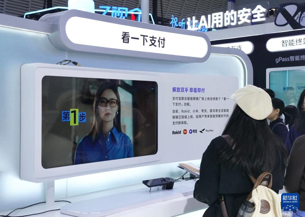 11月6日,觀眾在2025年世界互聯(lián)網(wǎng)大會“互聯(lián)網(wǎng)之光”博覽會現(xiàn)場的AI眼鏡展臺試戴AI眼鏡。新華社記者 劉瓊 攝