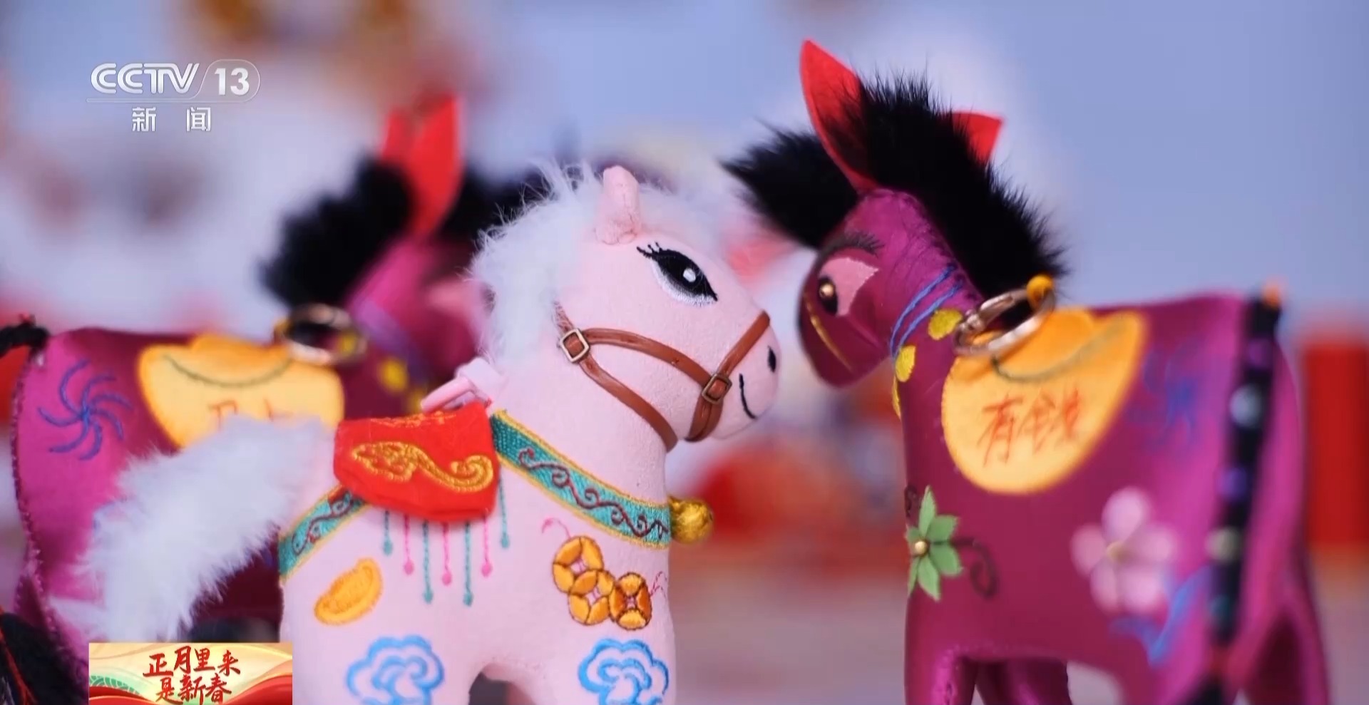 今年受歡迎的不只是馬社火的袍服,就連巡游的駿馬都被做成非??蓯?ài)的掛飾,成為爆款。小馬掛飾身上的刺繡花紋和袍服上的繡法同出一脈,都是源自傳承千年的國(guó)家級(jí)非遺——西秦刺繡。這是一門源于生活、代代相傳的老手藝。