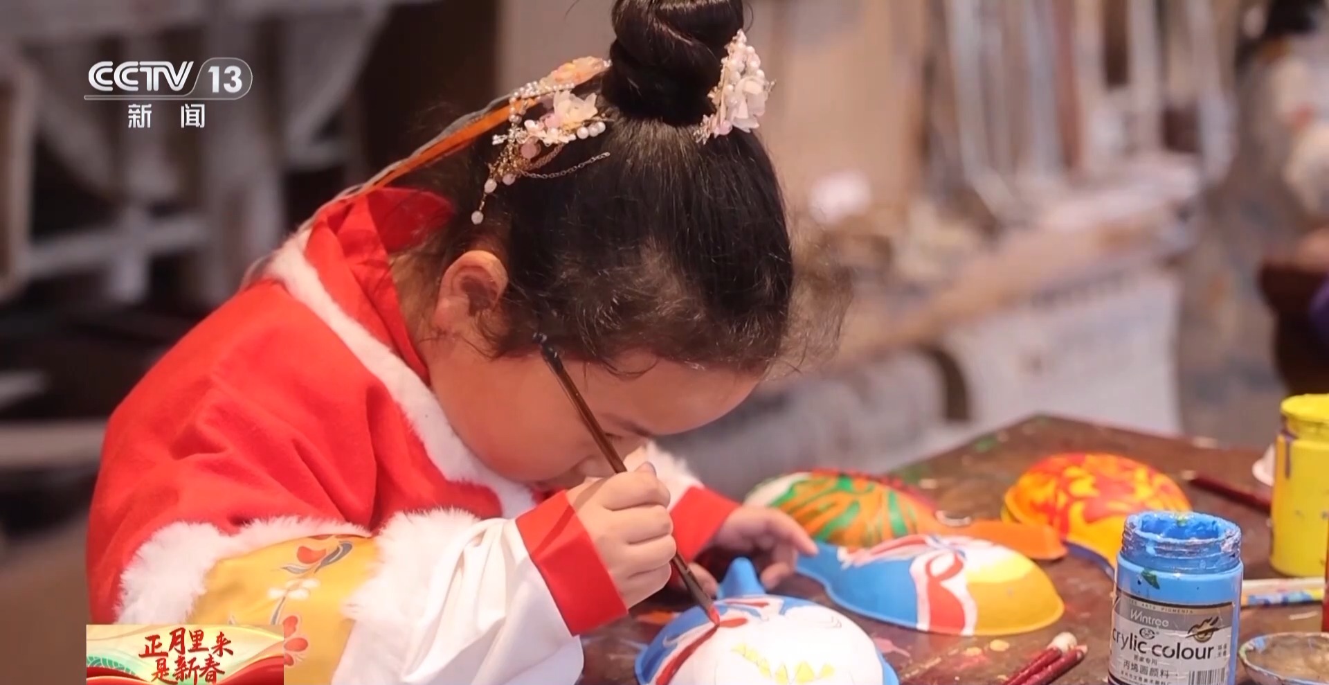 總臺(tái)央視記者 何莉:這個(gè)角色就是社火當(dāng)中的黑虎趙公明,人們認(rèn)為他可以除瘟消災(zāi)、帶來(lái)財(cái)運(yùn)。他臉上凸起,看起來(lái)非常立體,而這些凸起就是用普通的雞蛋殼制作而成。