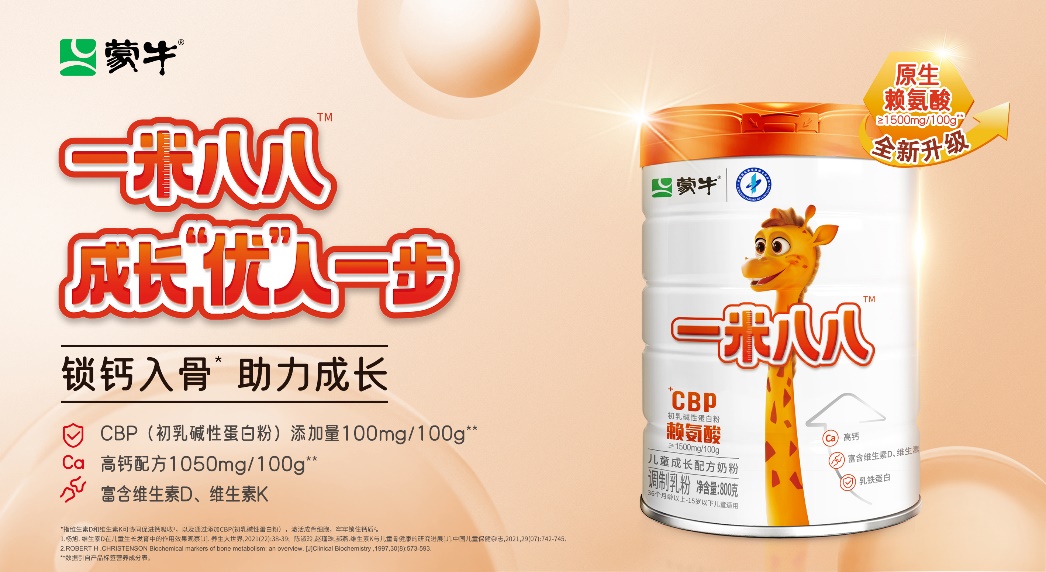 為了滿足兒童在不同成長階段的需求,蒙牛一米八八首創(chuàng)添加初乳堿性蛋白(CBP),鎖鈣入骨,志在為中國兒童骨骼成長發(fā)育提供專業(yè)的解決方案。上半年,與中國學(xué)生營養(yǎng)與健康促進(jìn)會合作科研實(shí)證,蒙牛一米八八奶粉針對學(xué)齡前兒童干預(yù)組在60天內(nèi)身高增長明顯,相較于對照組,身高差異高達(dá)30%。憑借強(qiáng)大的科研優(yōu)勢及產(chǎn)品品質(zhì),蒙牛一米八八榮獲世界乳品創(chuàng)新獎(jiǎng)的兒童乳制品優(yōu)秀獎(jiǎng),夯實(shí)了兒童骨骼發(fā)育營養(yǎng)領(lǐng)域的權(quán)威地位。
