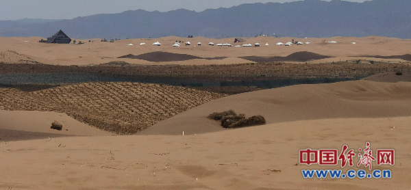 點沙成金,綠富同興。唐希明還積極引導(dǎo)當(dāng)?shù)厝朔N植沙蔥和經(jīng)濟(jì)林。“沙漠是陸地生態(tài)系統(tǒng)的重要組成部分,在防沙治沙的基礎(chǔ)上,我們更要學(xué)會利用沙漠資源,大力發(fā)展沙漠旅游、沙漠牧場、光伏發(fā)電等產(chǎn)業(yè),形成人沙和諧、沙為人用的良好局面?!痹谔葡C骺磥?,向沙漠要效益的前提,首先是要通過鎖邊治理使得周圍形成一道綠色的屏障,從而擋住風(fēng)沙。有了好的生態(tài)環(huán)境,才會有更多產(chǎn)業(yè)發(fā)展的可能。沙坡頭區(qū)旅游產(chǎn)業(yè)的快速發(fā)展就是中衛(wèi)治沙成績的有力見證。