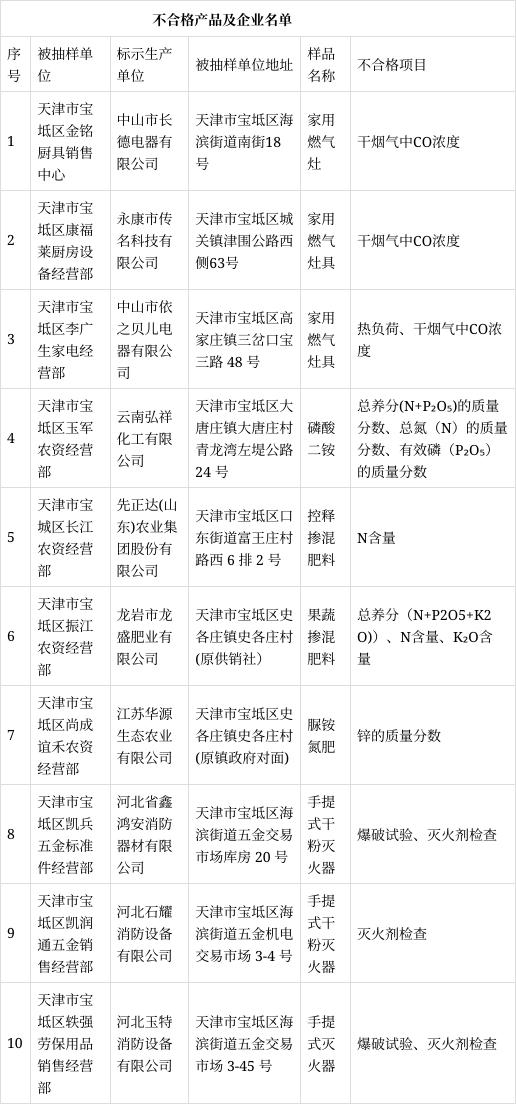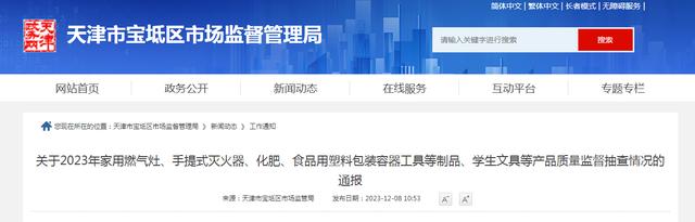 2023年,寶坻區(qū)市場(chǎng)監(jiān)管局開(kāi)展了家用燃?xì)庠?、手提式滅火器、化肥、食品用塑料包裝容器工具等制品、學(xué)生文具等產(chǎn)品質(zhì)量監(jiān)督抽查。共抽查產(chǎn)品100批次,不合格10批次,不合格發(fā)現(xiàn)率10%。