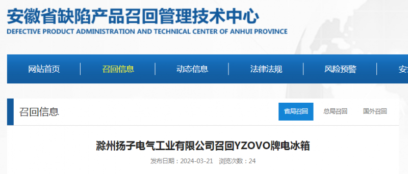 2024-03-22 09:33 來源:安徽省缺陷產(chǎn)品召回管理技術(shù)中心網(wǎng)站