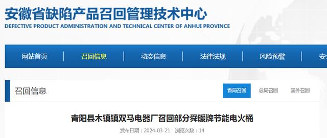 消費(fèi)者可撥打青陽縣木鎮(zhèn)鎮(zhèn)雙馬電器廠熱線電話13205669559,了解該召回產(chǎn)品的具體信息,此外也可登錄安徽省缺陷產(chǎn)品召回管理技術(shù)中心網(wǎng)站(http://www.ahdpract.com)了解更多信息,反映缺陷線索。