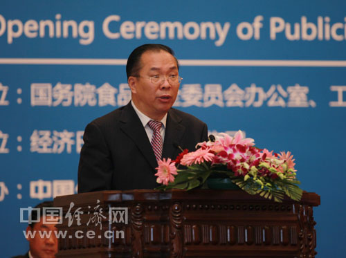 中共中央對(duì)外宣傳辦公室、國務(wù)院新聞辦公室副主任王國慶在第三屆中國食品安全論壇上致辭 王維亮攝