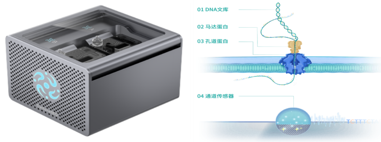 圖為納米孔基因測序儀(左)及其核心組件示意圖(右) 由市場監(jiān)管總局供圖