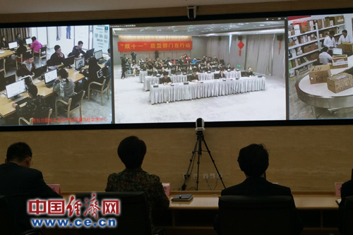 國家質(zhì)檢總局與設(shè)在杭州的質(zhì)檢總局電子商務(wù)產(chǎn)品質(zhì)量風(fēng)險監(jiān)測中心(杭州)進行了視頻連線,全過程監(jiān)管。中國經(jīng)濟網(wǎng)記者蘇蘭/攝