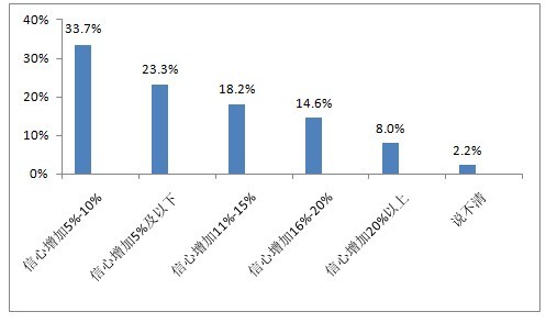 在認(rèn)為未來(lái)一年食品安全狀況會(huì)改善的市民中,信心增加程度為5%~10%的市民人數(shù)最多,占到了33.7%,其次是信心增加程度低于5%的市民,有23.3%。